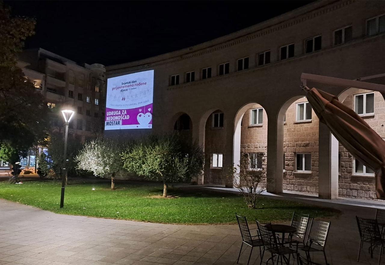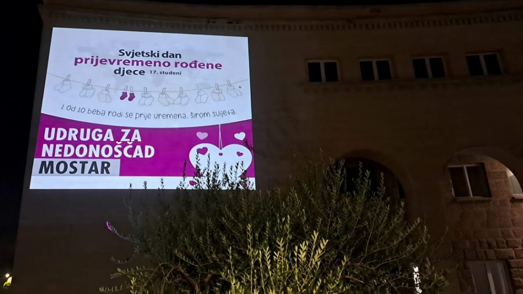 U povodu Svjetskog dana prijevremeno rođene djece, u zgradi Hrvatskog doma hercega Stjepana Kosače u Mostaru projicirana je simbolična poruka podrške i podizanja svijesti o izazovima i važnosti brige za prijevremeno rođene bebe. Ovaj poseban dan, koji se obilježava 17. studenoga, naglašava činjenicu da se svaka deseta beba diljem svijeta rodi prije vremena, a cilj je skrenuti pozornost javnosti na ovu osjetljivu temu. Organizaciju događaja podržala je Udruga za nedonoščad Mostar.